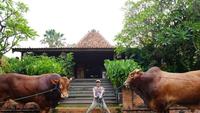 Ayu juga sempat berfoto dengan dua ekor sapi yang menjadi hewan kurban tahun ini, bersama para petugas jagal dan keluarganya.